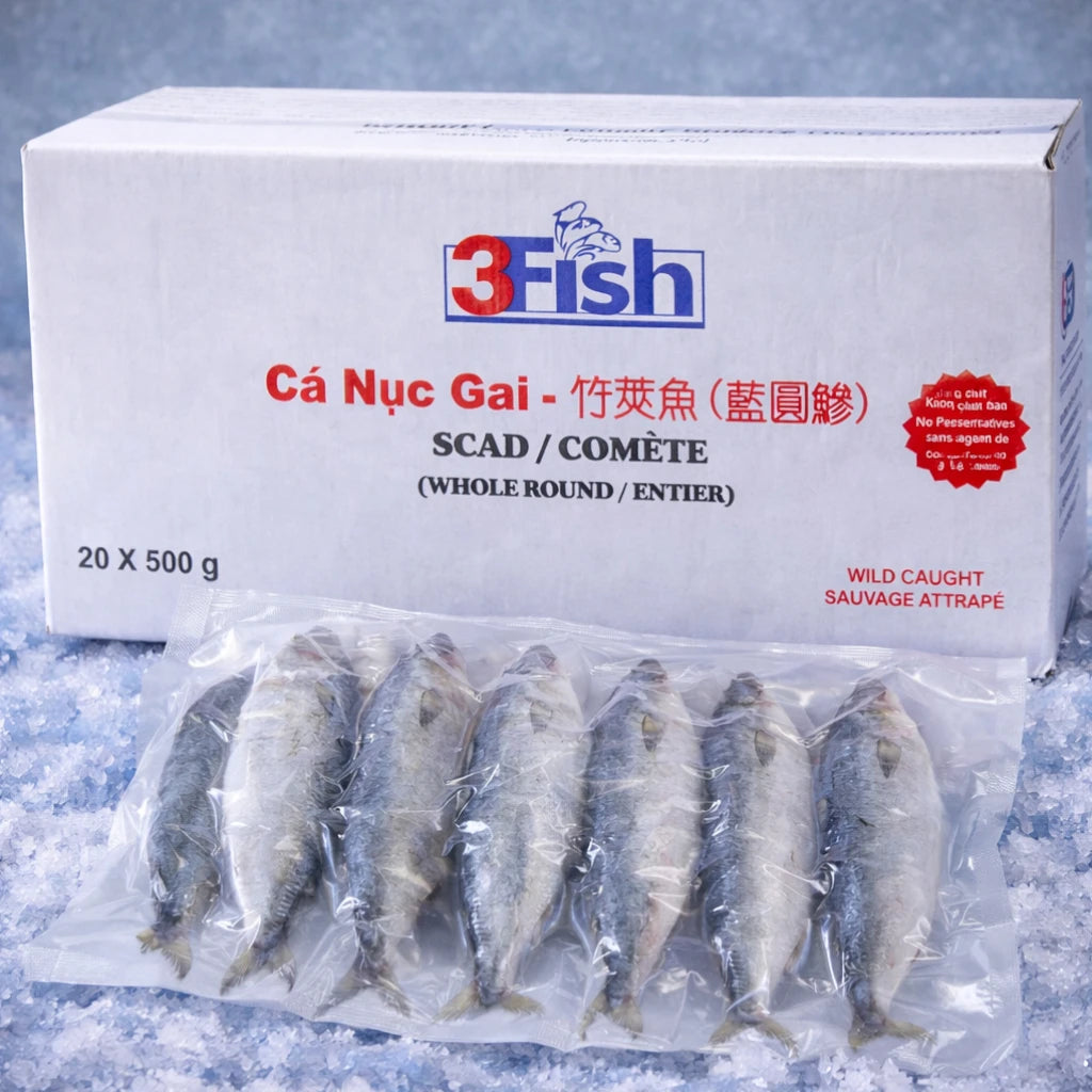 • Brand: 3FISH • Cut / Size: 80–150 g • Condition: Frozen • Origin: China • Packaging: Whole fish, 5 pcs per bag, 20 × 500 g per case Available in Vancouver, Victoria, Edmonton, Calgary, Winnipeg, Regina, Fort McMurray, and Red Deer.